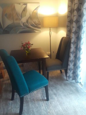 Explore the vast riches of a treasured heritage with the Baron Dining Chair. Designed to resonate elegance, Barons features a charming back and polished nailhead trimmed seat with a dash of grace and noble appeal. Complete with dense foam padding, fine fabric upholstery, solid wood frame and legs with non-marking foot glides, Baron is a stylish dining chair perfect for the modern home.