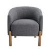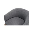 Upgrade your living space with this contemporary gray fabric barrel chair, designed for both style and comfort. Featuring a durable plywood frame and foam padding over pocket coils, this chair provides exceptional support and a luxurious seating experience. The textured gray fabric upholstery adds a touch of modern sophistication, while the attached back and seat cushions offer a clean, tailored look. The solid wood legs in a light brown finish provide a warm and stylish foundation, complementing any d¨¦cor. With a 300lb weight capacity and easy assembly, this chair is perfect for adding a cozy and elegant touch to your living room, bedroom, or reading nook.