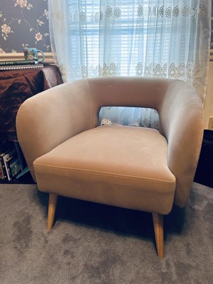 This Threshold Barrel Open Back Accent Chair Velvet Camel will look great with my décor in my office nook area. I like the low back profile of this chair and the neutral color, as it will go with pretty much any color scheme. It's comfortable and fashionable too. I would recommend it to my family and friends.
