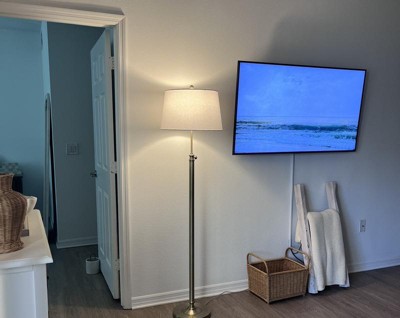 Set the Barton Floor lamp in your living room or bedroom for a touch of modern farmhouse vibes. Modify the lamp to fit your space with a decorative joint on the pole that adjusts the height from 57"-65". An antique brass metal finish paired with an oatmeal linen fabric shade brings warmth to any space. Turn the lamp on and off with a rotary switch on the socket.