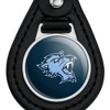 - QUALITY MATERIAL: Our durable round keychain is crafted from leather with a glossy resin-topped emblem featured design shown on one side. Approximately 1.5" (3.8cm) x 2.5" (6.4cm) in overall size, emblem is 1" (2.5cm)..