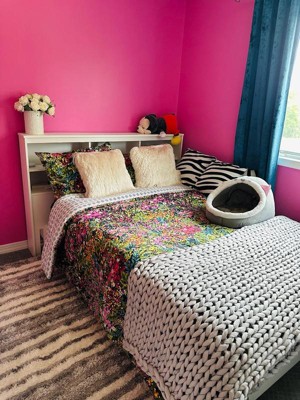 The Basel Comforter Set by Levtex Home is the freshness of a rich bouquet of flowers. Offered in fuchsia, purple, orange, blue and black, this design will immediately transform your bedroom. Made with a soft, luxurious cotton, this comforter set features a Monet-inspired, bright, fun floral. It has a fuchsia, purple, orange, blue and black on the front and a black and white geometric on the reverse. It is filled with a hypoallergenic 100% polyester filler. The Basel Comforter Set is machine washable and includes the comforter and pillow sham. Enjoy this for years to come!