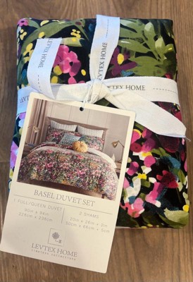 - LEVTEX BASEL : The Basel duvet collection is a Monet-inspired, bright, fun floral. The set consists of a duvet cover and matching pillow sham.