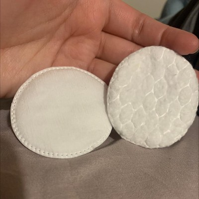Why don’t they make these as a large pack?! These are not the same as the ones in the bigger pack that they currently sell. I prefer these so much more! They have smooth sides and don’t leave fuzz like the quilted ones do when I remove my makeup. I have not tried them for removing nail polish. The one on the left is from the travel size pack and the one on the right is from the 100ct pack.