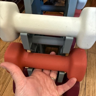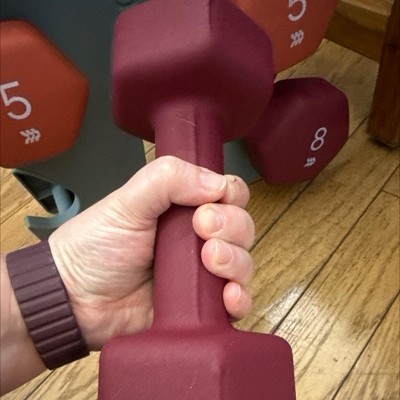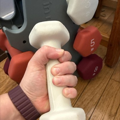 A: The weights have a soft neoprene exterior for a comfortable and secure grip.