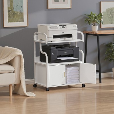 Save up on space and have on the go mobility with this storage printer stand. Composed out of durable wood, this stand offers a sturdy exterior to store printer, books, files, and kitchen storage. Open storage space and closed storage compartment provides plenty of space to store office and kitchen items in. Basic furniture makes all the difference in your office.