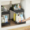 Bring order to cluttered cabinets with this 2-pack of under-the-sink organizers, thoughtfully designed for maximum flexibility. Whether you're tackling bathroom vanities or small kitchen cupboards, these dual-level units help maximize vertical space while maintaining an open, airy layout. Their lightweight yet durable constructions ensure reliable support for everyday items, making them as practical as they are visually appealing. Perfect for compact homes, apartments, or shared spaces, this set gives you the freedom to position the organizers side-by-side or in separate cabinets based on your needs. The open basket styles add a touch of modern simplicity, while the sliding functions eliminate the hassle of digging through deep, cluttered shelves. Ideal for quick reorganizing, they streamline your daily routine with a blend of efficiency and elegance. Each unit assembles quickly without the need for tools, offering a hassle-free setup perfect for renters or anyone seeking a non-permanent storage upgrade. Adjustable heights and customizable configurations allow you to work around plumbing or awkward corners with ease, while the smooth-glide sliding drawers provide effortless access to items tucked away in the back. From cleaning supplies and toiletries to pantry staples and dish essentials, these organizers adapt to your lifestyle, bringing both form and function to even the tightest spaces.