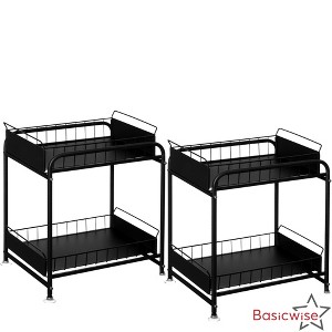 Basicwise Under Sink Organizer Sliding Wire Baskets Adjustable 2-Tier Metal Storage Rack for Bathroom Kitchen or Utility Cabinets