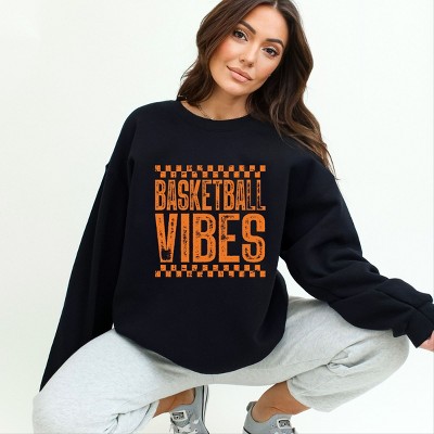Basketball Vibes Checkered Distressed - Women's Lightweight Garment Dyed Sweatshirt