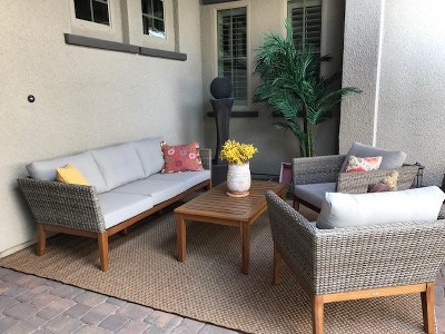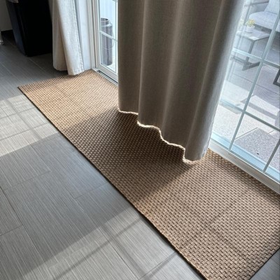 A: The rug features a chic basketweave design, offering a rustic and eye-catching look.