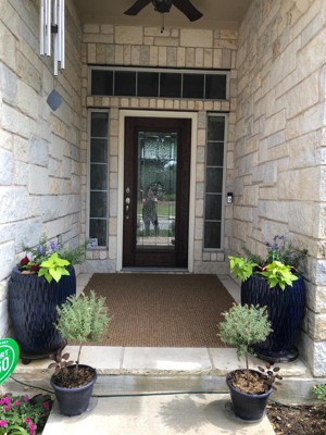 A: The rug is made from 100% polypropylene, providing durability for indoor and outdoor use.