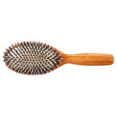 Bass Brushes Style & Detangle Hair Brush Premium Bamboo Handle with Professional Grade Nylon Pin Large Oval Black Cushion Dark Bamboo