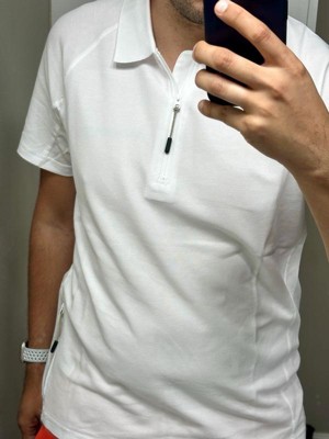 BASS OUTDOOR Mens Hiker 1/2 Zip Polo Shirt, white, Large