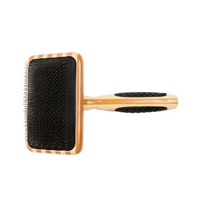 Bass Pet Brushes De-matting Pet Brush with 100% Premium Alloy Pin SOFT Pure Bamboo Handle Extra Small Slicker Style Striped Bamboo
