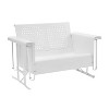 Glide back into lazy summer afternoons with the Bates Loveseat Glider. This vintage-style loveseat comes in a variety of vibrant colors, offering a fun outdoor lounging experience. The back features a unique basket weave design that allows air to circulate, and the base has a smooth gliding mechanism for relaxing in comfort. Made of durable steel, this glider has a powder-coated finish that resists rust and sun fade. The Bates Loveseat Glider is sure to add a dash of retro fun to your porch or patio.