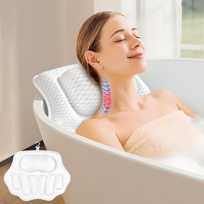 WATERPROOF AND FAST DRYING: some bath pillows are designed with absorbent mesh resulting in a heavy waterlogged pillow that slides down your tub and takes hours to dry out; our superior design is waterproof, helping to repel water from entering the pillow; simply air dry or wipe dry after use