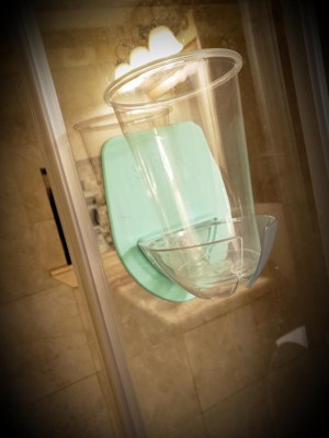 This was very easy to put on the sliding glass door of my shower. It held my favorite plastic cup perfectly. Now I can have my favorite drink while I am relaxing in the shower.