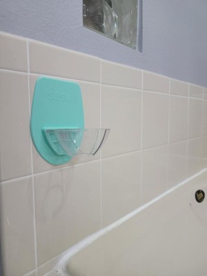 Great cup holder for your shower or bath. No adhesive needed, just sticks by itself. As long as your surface is smooth (or glossy tile) this should work great for you. It’s also easy to remove or move from place to place as needed.