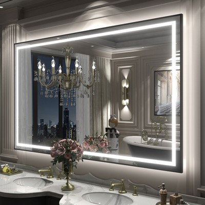 Bathroom Mirror with Led Lights Front and Backlit,Anti-Fog Lighted Vanity Mirrors for Wall Mounted,3 Colors and 5 level Dimmable, Horizontal/Vertical