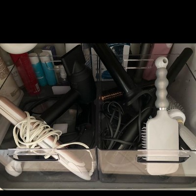 - Bathroom organizer bin fits perfectly on shelves, countertops and inside cupboards
