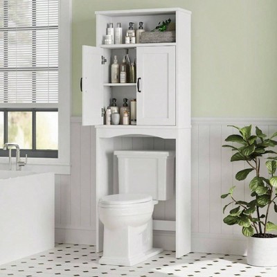 Bathroom Storage Cabinet Corner Floor Cabinet with Doors Adjustable Shelf Narrow Toilet Paper Cabinet Small Spaces White White standard