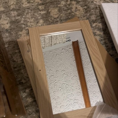 The pictures of the oak cabinet with the ribbed doors (not mirrors) are incorrect. I was shipped an oak cabinet with mirrors on the front instead of the cute ribbed design. Very misleading and very disappointing.