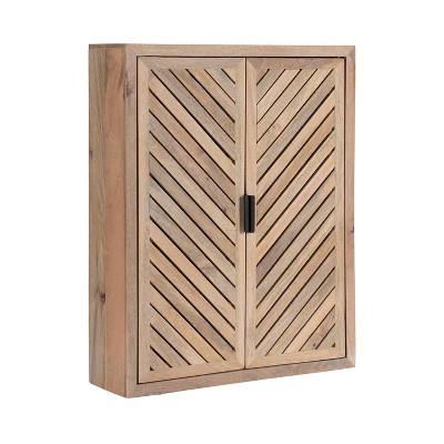 - Featuring an open top shelf and charming double wave-patterned doors, this medicine cabinet offers a blend of display and concealed storage. Ideal as a bathroom wall cabinet over toilet, it keeps essentials organized without sacrificing style.