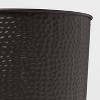 Both stylish and useful, this Solid Hammered Wastebasket from Threshold™ helps keep your master bath or guest bathroom neat and tidy. Constructed from sturdy iron for long-lasting use, this solid wastebasket features a textured hammered design allover that lends your space a touch of chic flair while matching well with any existing decor. Dress up your bathroom with functional style with the help of this hammered metal wastebasket.