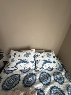 [This review was collected as part of a promotion.] Design & Style: This set features a beautiful coastal theme with blue sea turtles, shells, starfish, and coral on a crisp white background. The blue-and-white color palette feels calm, clean, and beachy—perfect for a coastal, nautical, or summer-inspired bedroom. The pattern is detailed and elegant without being too busy. Fabric & Feel: The fabric appears to be lightweight and soft, with a quilted texture that adds a cozy feel while still being breathable. It’s comfortable for year-round use, especially ideal for warmer climates or spring/summer seasons. Quality: Stitching looks neat and evenly spaced, giving it a durable, well-made appearance. The material seems easy to maintain and suitable for regular use. The branded ties suggest attention to presentation and quality. Comfort: Provides light-to-medium warmth—great if you prefer a comforter that isn’t too heavy. It layers well with blankets for cooler nights.