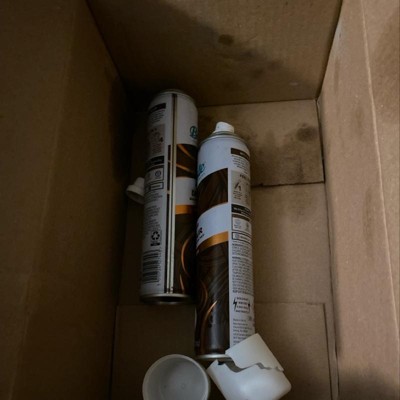 Stained my shower/tub. Spray nozzle gets stuck down each time I try and lightly spray a layer. Doesn’t fully adhere to your hair — feels powdery no matter how little you use and brown gets on everything. Horrible purchase. Also BARELY helps make your hair look clean and fresh like dry shampoo’s literal purpose.