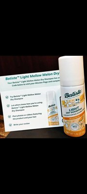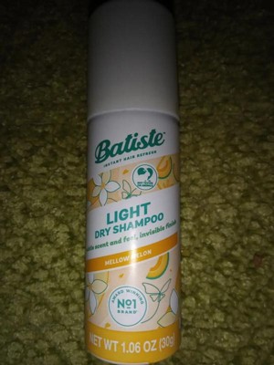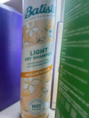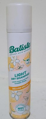 - 3.81 oz. can of Batiste Light Dry Shampoo with a lightweight feel, invisible finish, and subtle scent; Mellow Melon fragrance keeps things delicately fresh