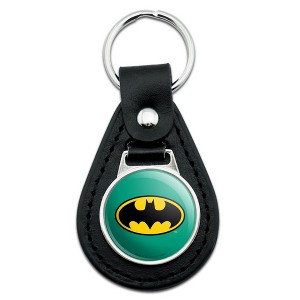 Batman Classic Bat Shield Logo Black Leather Keychain