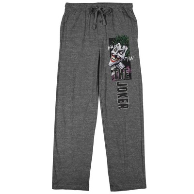 • GRAPHIC DESIGN: A cartoon image of the Joker appears on the left leg of these sleep pants as green letters repeat the word, "Ha," behind them to show his laughter. Fans of the Clown Prince of Crime will love this design.