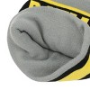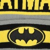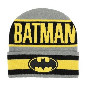 Gear up with this gray Batman cuff beanie featuring a bold design with Batman's logo on yellow and black stripes, complemented by yellow letters spelling "Batman." Made from cozy acrylic yarn, this beanie combines comfort with a standout look. Ideal for fans who want to showcase their superhero style while staying warm. For best care, hand wash it in cold water and lay it flat to dry to preserve its design and fit.