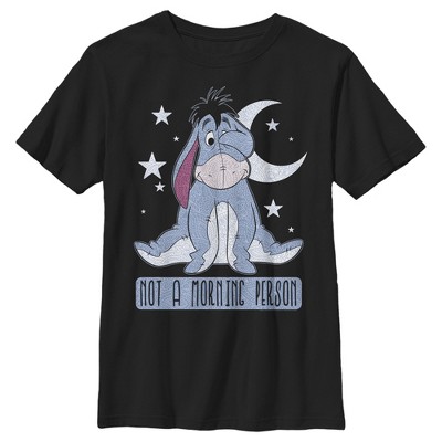 • GRAPHIC DESIGN: Batman perches on a grey ledge while black letters outlined in yellow spell out, "Not a morning person." Boys who enjoy getting some extra rest in the mornings will love to relate with Batman on this tee.