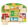 Facilitate exciting discovery and fine motor development with this Wooden Lock & Latch Board. The board includes 5 hidden pictures of animals that children must uncover by unlocking or unlatching the doors. Each door has a number that is the same as the number of animals hidden behind it to encourage number recognition skills as they meet their new animal friends. Includes a matching storybook.