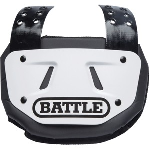 The Battle Sports Protective Football Back Plate is designed to deliver maximum protection and comfort to players of all ages. This plate absorbs impact and provides reliable protection to your back region. Compared to flat football back plates, the unique design of this curved plate disperses impact and is much more comfortable to wear. Strong attachment straps keep the back plate close to your back. Floppy back plates won't protect you from painful blindside hits, so get your game right with this back plate from Battle Sports. Features: High impact foam interior. Curved design for max energy disbursement. Universal fit; Available in Adult and Youth sizes. High gloss white finish. Adult size fits individuals 5'4" and taller and 100 lbs. and over. Care Instructions: Hand wash with mild soap. Do not submerge in water. Dry at room temperature. Do not use machine dryer.