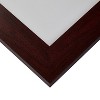 With clean rectilinear lines and a square profile, this picture frame is ideal for most modern decor needs. The Bauhaus picture frame series features moulding with a composite wood core and laminate wrap. This sleek 2" wide picture frame comes finished in Mahogany Red. With some Smooth White matting you can elevate your prints to the next level. Sharp and bold, the Bauhaus mahogany picture frame is the perfect touch of modern.