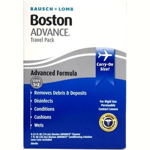 The Bausch & Lomb Boston Advance Formula Travel Pack is designed to provide contact lens wearers with a convenient, all-in-one solution for maintaining healthy and comfortable gas permeable (GP) and rigid contact lenses on the go. This travel-friendly pack includes both the Boston Advance Cleaner and the Boston Advance Conditioning Solution, ensuring your lenses stay clean, disinfected, and hydrated wherever you are. The dual-step system removes debris, protein deposits, and lipids while providing lasting lens comfort and protection against irritation. Its compact packaging makes it ideal for vacations, business trips, or daily commuting, so you can enjoy clear, comfortable vision with confidence. Trusted by eye care professionals, Boston Advance delivers proven performance in contact lens care for those with demanding lifestyles.