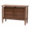 Attain an environment of serene yet versatile grace with the stunning Alyssa dresser. Made in Malaysia, this Japandi inspired piece consists of a sturdy wood frame embellished with woven rattan adornments. Six drawers offer superb storage space for clothes, linens, and more while reserving the tabletop as a lovely display area. The Alyssa requires assembly and is affixed with round metal knobs that stand out brilliantly against the warm wood tones. The open design of the frame creates a captivatingly rustic display, making the Alyssa dresser a fantastic bedroom fixture. Overall: 47.20" W x 17.70" D x 32.70" H; Drawer(s): 16.90" W x 11.20" D x 4.10" H; Clearance(floor to bottom of cabinet): 8.10" H;