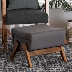 Product Name: Baxton Studio Hanson Mid-Century Modern Dark Grey Fabric and Walnut Brown Finished Wood Ottoman