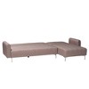 Relish in the contemporary craftsmanship of the cozy Lanoma sleeper sofa. Made in Malaysia, this stunning piece consists of a sturdy wood frame padded with foam and upholstered in sumptuous fabric. The channel tufted cushions lend a sleek appearance while ensuring a plush embrace. The Lanoma requires assembly and utilizes a convenient click-clack mechanism that allows for three adjustable positions when converting from a sofa to a bed. Cozy pillows complete the leisure elegance of the piece, making the Lanoma sectional sofa an alluring piece of any arrangement. Overall Convertible Sofa: 103.10" W x 63.00" D or 66.00" D (Depending on Backrest Positions); Position 1(Sofa Mode)Overall Height: 33.80" H; Position 2 Overall Height: 28.00" H; Position 3 (Bed Mode) Overall Height: 16.90"H; Convertible Sofa Seating : 95.00 W x 43.70 "D x 16.90" H; Backrests(from seat up):16.90" H; Arms(from floor up): 23.20"; Overall 3-Seater: 68.00" W x 45.00" D x 33.80" H; 3-Seater Seating: 63.20" W x 23.00" D x 16.90" H; Overall Right Facing Chaise: 36.50" W x 66.00" D x 33.80" H; Chaise Seating: 31.80" W x 43.70" D x 16.90" H; Clearance: 6.00" H;