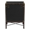 Lend a touch of industrial-style flair to your space with the stunning Laura end table. Tactfully crafted in China, this vintage inspired piece consists of a sturdy wood frame wrapped in smooth canvas. Metal-plated edges and studded embellishments highlight the robust nature of the piece while the lift-top compartment offers convenient storage. The Laura will arrive fully assembled and utilizes minimalist metal base with rounded legs for excellent stability and support. Beautifully shaped leather strips complete the look, making the Laura end table an enthralling addition to any space. Overall: 18.50" W x 15.00" D x 25.20" H; Internal Storage Space: 17.70" W x 14.20" D x 16.70" H; Clearance(floor to cross stretcher): 7.10"H;
