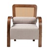 Baxton Studio Sage Fabric and Wood Arm Chair with Woven Rattan Light Gray/Walnut Brown/Natural Brown: Polyester Upholstery, Rubberwood Frame