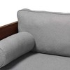 - Mid-century modern tuxedo frame sofa upholstered in cozy boucle fabric