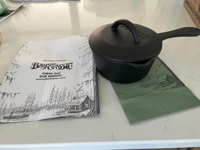 Bayou Classic 1 Quart Cast Iron Covered Sauce Pot Cookware with Self-Basting Domed Lid and Pour Spouts for Home Kitchens, Black