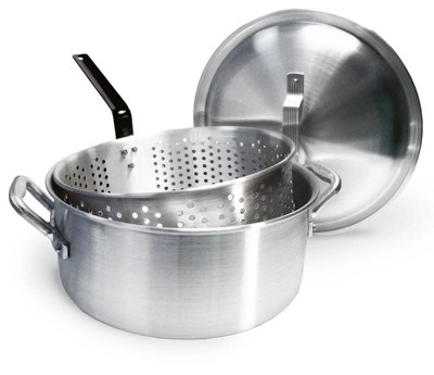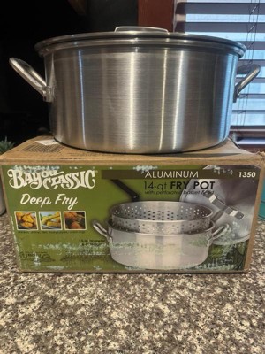 Bayou Classic Durable 14 Quart Aluminum Fry Pot and Removable Basket, Silver