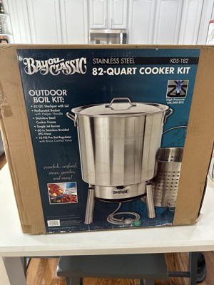 [This review was collected as part of a promotion.] Barbour International, Inc. - Bayou Classic KDS-182 Stainless Steel 82 Quart Seafood & Crawfish Cooker Kit. This thing is the perfect Size. It is so easy to clean.