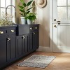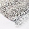 A: The rug is handmade, featuring a woven pattern with fringe edges for added texture.