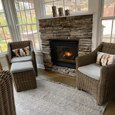 A: Hello GoSparky, thank you so much for showing your interest in the item "Bayside Indoor/Outdoor Rug Heathered Gray". In order to answer your question, this rug is featuring a woven pattern with fringe edges, this handmade indoor rug creates an inviting appeal in your home. Complete with a flat pile height for easy cleaning and convenient use in a variety of locations, this indoor rectangular rug provides soft comfort underfoot whether you place it in your entryway, kitchen or living room to add warmth and texture to your floors. I hope that helps - Akanksha.